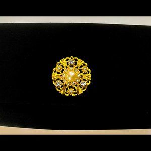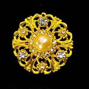 ▪️ Gold scroll with faux pearl & rhinestone accent at center front