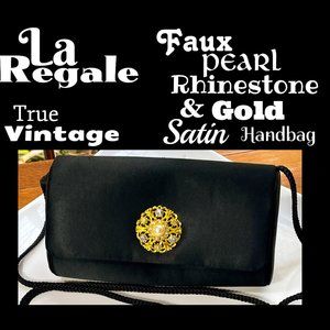 ⭐️HP⭐️VTG▪️LA REGALE▪️Handmade Faux Pearl Rhinestone & Gold Accent Satin Handbag