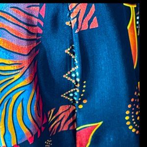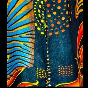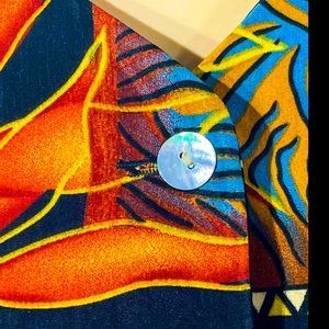 ▪️ Black with orange, gold, browns, tan, yellow, cream & blue