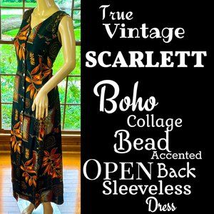 ⭐️HP⭐️VTG▪️SCARLETT▪️Boho Collage Bead Accented Open Back Sleeveless Maxi Dress