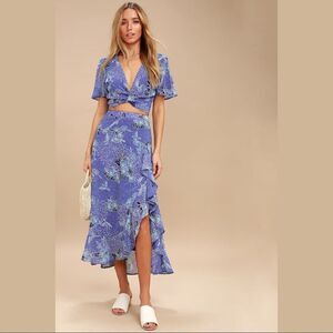 Breathtaking vacation destinations deserve a tropical piece like the Lulus Views Periwinkle Blue Floral Print Maxi Skirt!