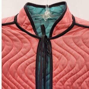 Vintage Orange Green Black Contrasting Edge High Neck Open Quilted Bed Jacket