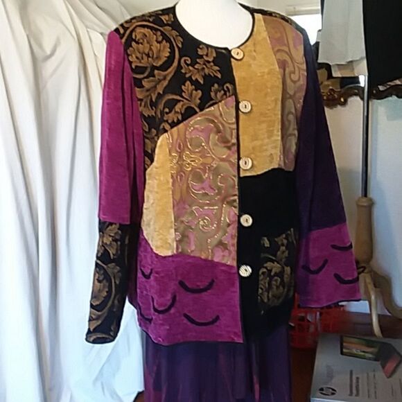 🎉🎉Host Pick🎉🎉Vintage like Cool retro multiple pattern patchwork jacket . Wood buttons. Fully lined