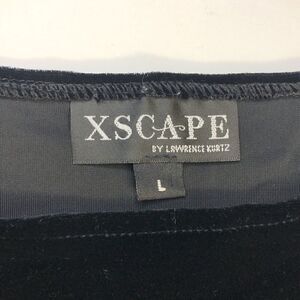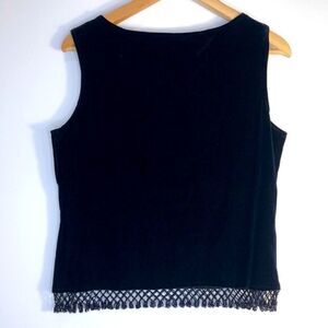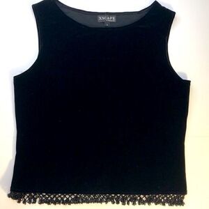 HP! XSCAPE Black Velvet Sleeveless Scoop Neck Top w Crochet Beaded Fringe (L)