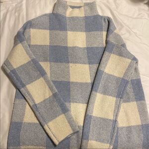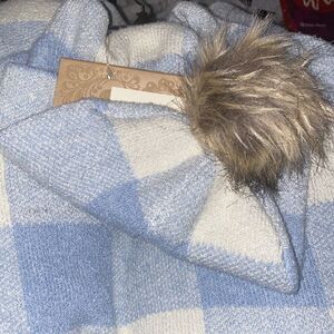 ✨HP✨women mock neck plaid light blue & white sweater & hat set✨