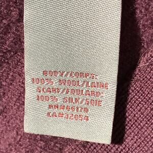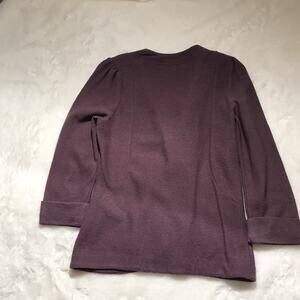 Long Sleeve Unlined Wool Jacket. Button Front with Snap Closure. Fabric Trim. Pit to Pit 19”. Length 25”. Item 0422-3