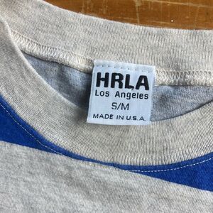 HRLA Vintage Striped Seattle Washington Tee Shirt 100% Cotton Grey Blue size S/M
