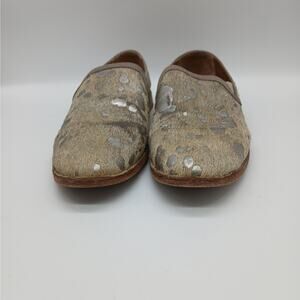 H.S. TRASK Ali Metallic Silver on Taupe Gray Calf Hair Loafers Flats Size 9M