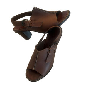HS Trask & Co Brown Leather Sling Back Boho Heels size 6