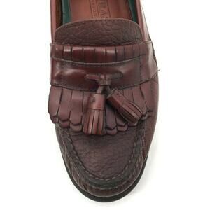 H.S. Trask Creel Mens Kiltie Loafers Tassel Moc Toe 8M Brown Bison Leather