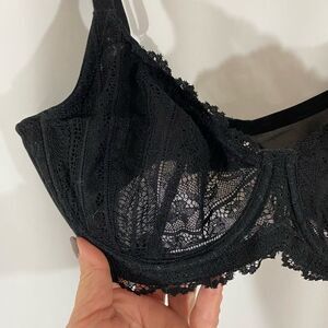 HSIA Underwire lace front Mesh sides 3 back hook closure Comfortable straps Beautiful bra Black 34C EUC Same day shipping