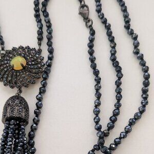 HSN 925 Silver Vermeil MLD Fire Opal Marcasite Beaded Tassel Long Necklace