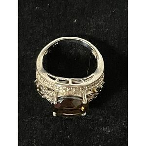 HSN Ring Large Smoky Brown Size 8 Mid Century Edwardian Style 925 Silver