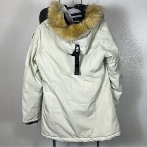 Stay warm and stylish with this elegant white hooded parka. Perfect for chilly days.✨