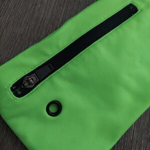 4.5" wide sport beltFront 6" rubber zipper zippered pocketFront 8mm grommet holeFront size 3" rubber zipper zippered stash pocketBack 6" rubber zipper zippered pocketMade Made of 90% Micropoly and 10% Lycra Moisture wicking