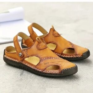 HSY Fashion Men's 100% Caoutchouc Leather Closed Toe Sandal Brown Size 47