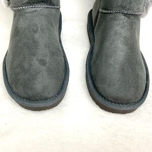 HStylish Gray Slip On Calf High Fur-Lined Waterproof Winter Snow Boots
