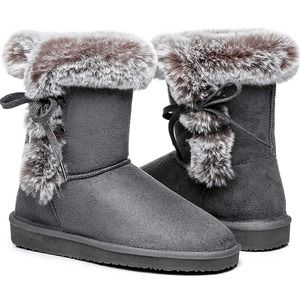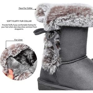 HStylish Women's Classic Mid-Calf Warm Boots Fur Lined Winter Snow Warm Slip on Anti-Slip Boots for Outdoor