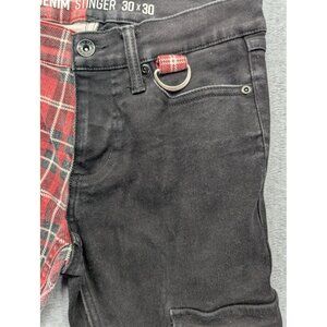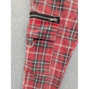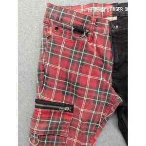 HT Denim Stinger Pants Mens 30x30 Red Plaid Black Split Leg Cargo Skinny Punk