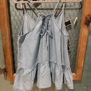 Brand new with tags! Elevate your style with this chic light blue 100% tencel racerback tank. Perfect for casual outings or dressed up. Enjoy the comfort and elegance it brings to your wardrobe.