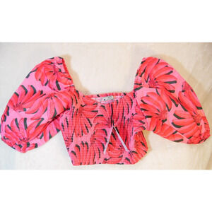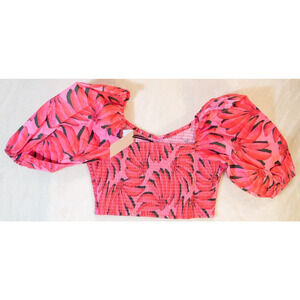 HT360 Top Womens 2XL Fuchsia Cropped Smocked Puff Sleeve Floral 139$