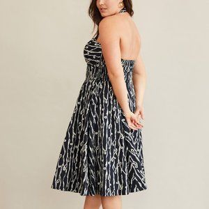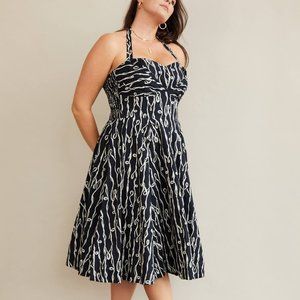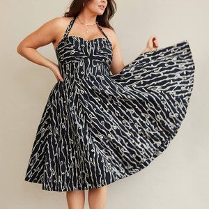 Size 16W black and tan HTF Anthropologie Cerys Halter Midi Dress by Girls From Savoy. This striking, monochromatic dress delivers sweetness and sophistication in one oh-so-feminine fit. NWT.