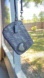 Exterior Features: "New York" script with a metallic gold heart design, gold leather trim, attached wrist strap