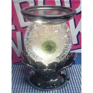 Metal construction with translucent panels that glow beautifully in natural light or when lit. Fits Bath & Body Works 3-wick candles (candle not included). Signed Bath & Body Works on the base.