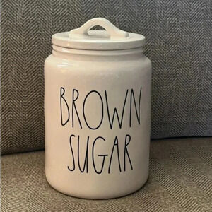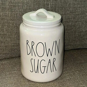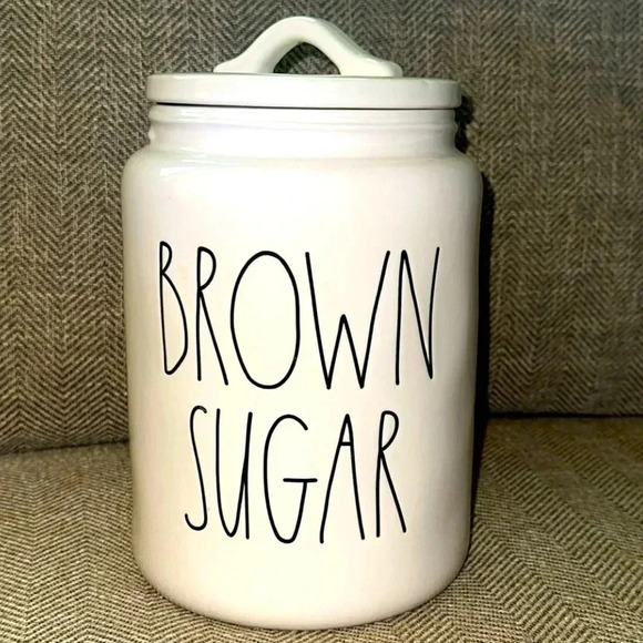 Rae Dunn Magenta Artisan Collection Ceramic BROWN SUGAR Canister Large Food Storage Container Black/White Farmhouse Style Country Living Kitchen Dining Tabletop Decor Home Staging Collectible HTF Rare