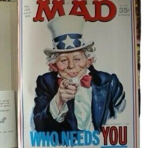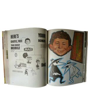 In 1969, Gaines and Feldstein offered a hardback book that included black and white reprinted material, three fold-ins, full color covers, and the now infamous six inserts pulled from MAD's 1960s-era "Worst From" and "Follies" specials.