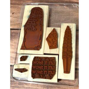 HTF VINTAGE Stampin Up! Let It Snow WOOD MOUNTED Rubber Stamp Set SNOWMAN TREE