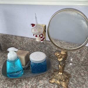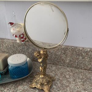 HTF VTG Rare French 14”Vanity 7”Mirror Gold Ormolu Cherub Stylebuilt Matson Type