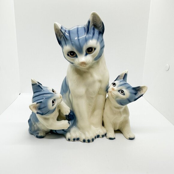 HTF Vtg Harvey Knox Mom Kittens Cat Figurine Tiger Tabby Family Royal Orleans