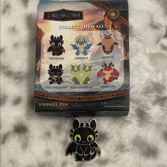 HTTYD enamel pin from set from Hot Topic. This pin is Toothless. Box available upon request.