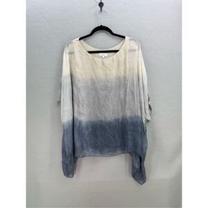 H Trend Made in Italy Womens Blue Cream Ombré Dye Oversized Blouse Top Small