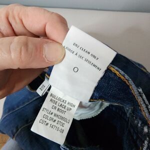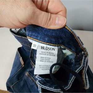 Elevate your style with these trendy Hudson Bullocks high-rise lace-up crop flare jeans. These pre-owned jeans, made from a comfortable cotton blend, are perfect for any occasion. The medium wash and denim fabric type give them a classic yet stylish look, while the cropped silhouette and lace-up closure add a touch of uniqueness.