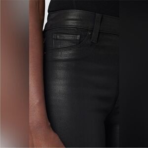 Nice black coated denim jeans by Hudson. High waisted. Zipper and button fly. Super skinny. Noir coated. Great condition! Women’s size 24 (00).