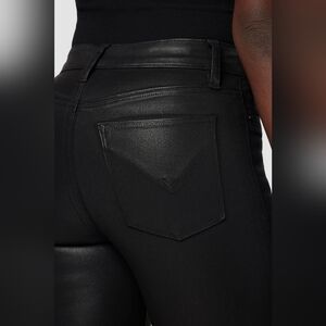 Our Barbara High-Rise Super Skinny Ankle Jean in Noir Coated is cut for a slim, contoured fit with an elevated waistline and a finished hem that’s cropped at the ankle. Made from premium stretch denim specially treated with a high-shine wax coating, it’s finished with classic five-pocket details.