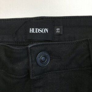 HUDSON Black Glittery Coated NATALIE Super Skinny 5 Pocket Logo Hardware Jeans