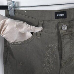 HUDSON CROP RILEY Relaxed Straight Distressed LOGD Green Jeans WC4100DLW Size 27