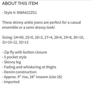 New with tags HUDSON Collin Skinny Ankle Jean Dark Wash