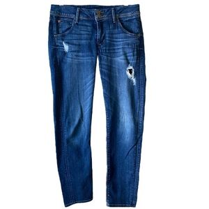 HUDSON Distressed Collin Flap Skinny Low Rise Stretch Blue Denim Jeans Womens 29
