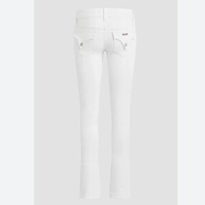These are a pair of Beth jeans by Hudson, crafted in soft, premium stretch denim that smooths and sculpts without sagging. The mid-rise baby bootcut silhouette is flattering and timeless, featuring signature button-flap back pockets for a classic Hudson touch. In crisp white, these are perfect for year-round styling. New with tags.