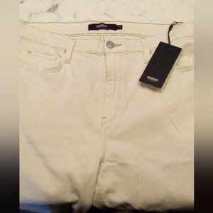 HUDSON JEANS NWT White Soft Ecru Tan Stitch Holly Straight Size 31