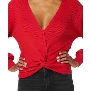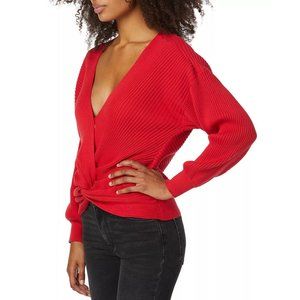 HUDSON JEANS Twist-Front Ribbed Sweater in Red Race Car - Medium NWT