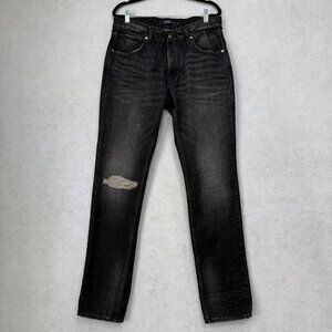 HUDSON Jeans Mens 32 Black Wash Blake Slim Straight Distressed Button Fly Denim