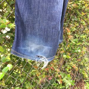 condition: tattered left hem, missing left back pocket button, mark on left hip (see photos)