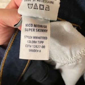 This is a preowned but in excellent condition pair of Hudson Nico Midrise Super Skinny Jeans in a size 26. Per the tag, the color is called "TIPP" and the style # is WM407DED. As you can see in the pictures, they have some distressing in a few locations.