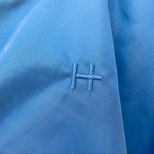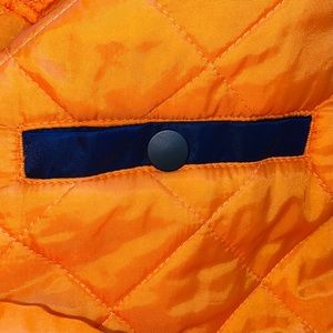Purchased but son never wore it...just been sitting in the closet. Classic Navy with Orange interior. Knit hood adds nice layered feel.....Perfect for these cool nights out on the Town...