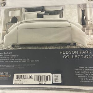 HUDSON PARK COLLECTION Italian Linens Bedskirt, white/stripe Charcoal